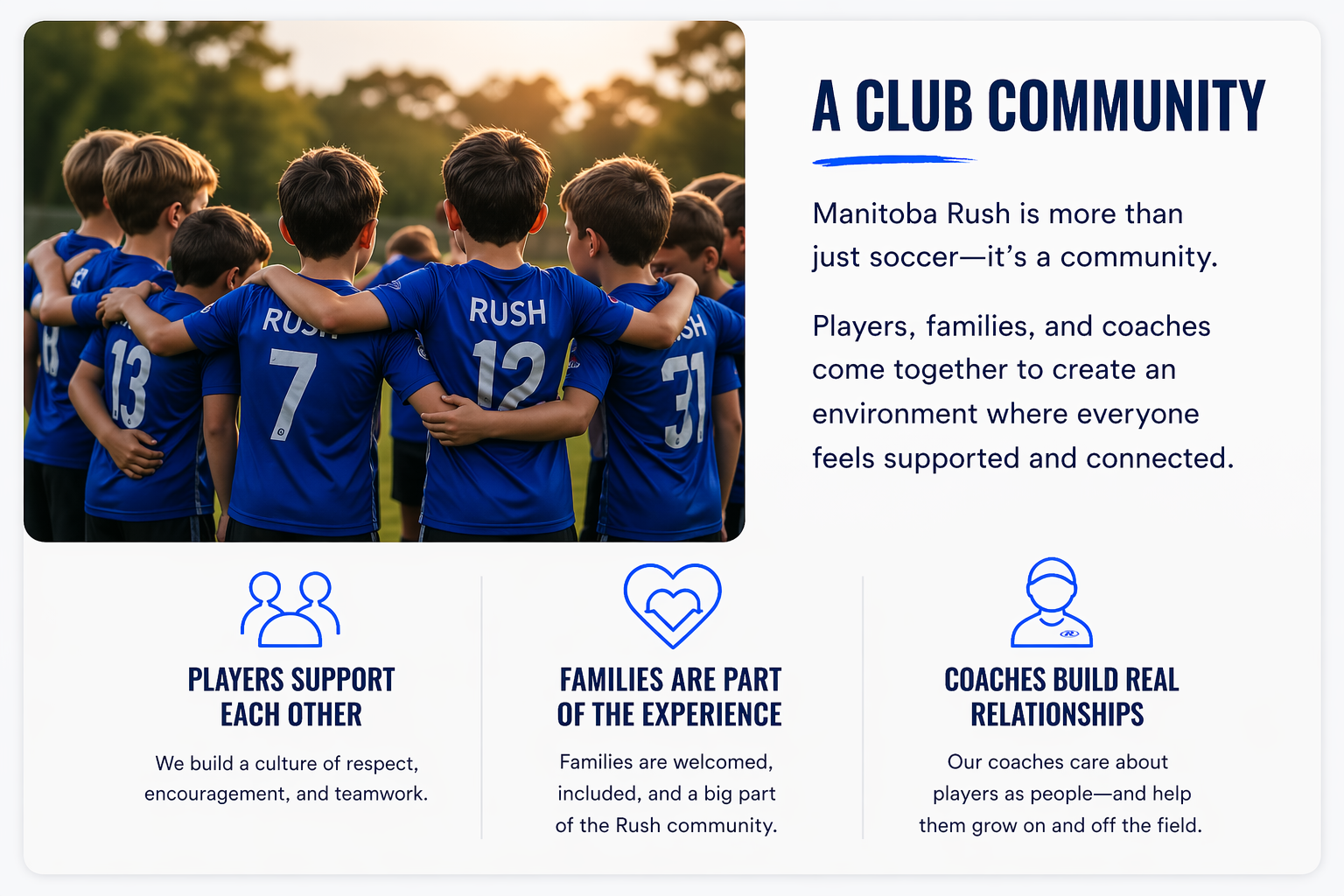 Manitoba Rush FC is operated by Manitoba Rush FC Community Service Co-operative Inc., a registered nonprofit organization based in East St. Paul, Manitoba. Our mission is to provide accessible soccer programming and community development opportunities for youth.